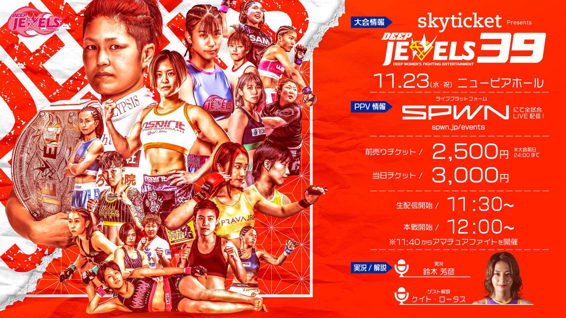 この記事では、「DEEP JEWELS 39」の大会情報・日程・チケット情報・出場選手・対戦カード・試合順・放送予定・視聴方法・見逃し配信や、最新情報・試合結果速報など観戦に役立つ情報をわかりやすくまとめています。
